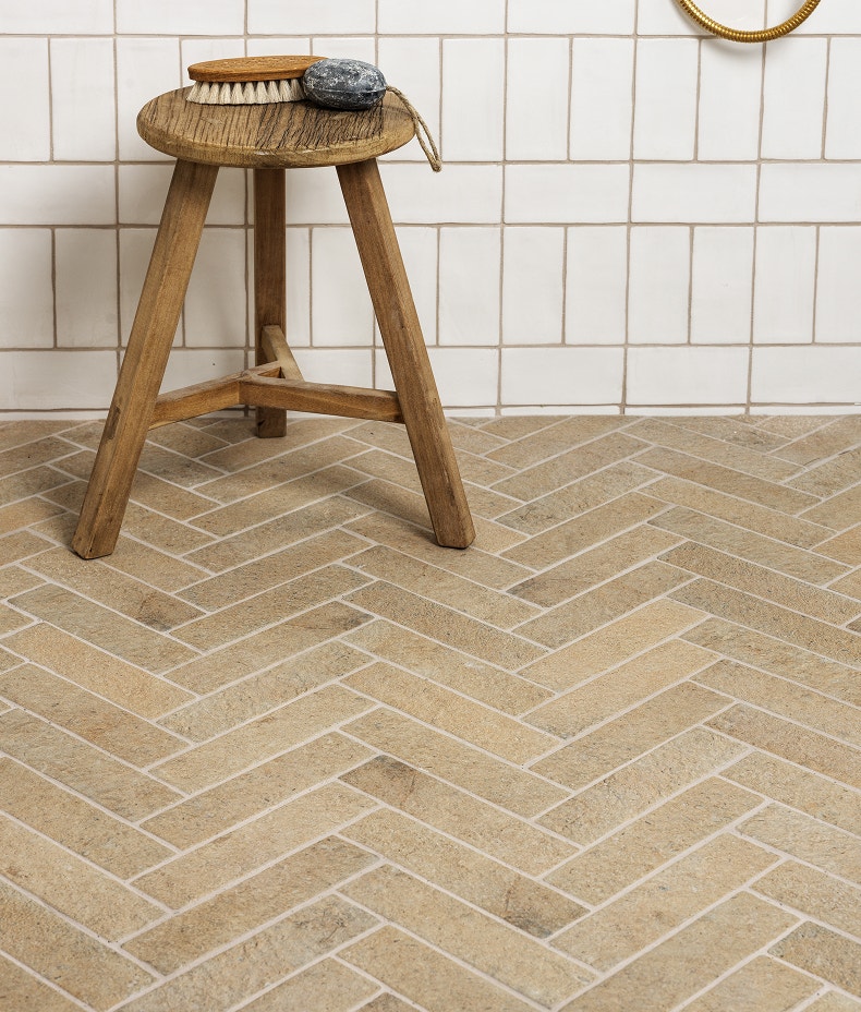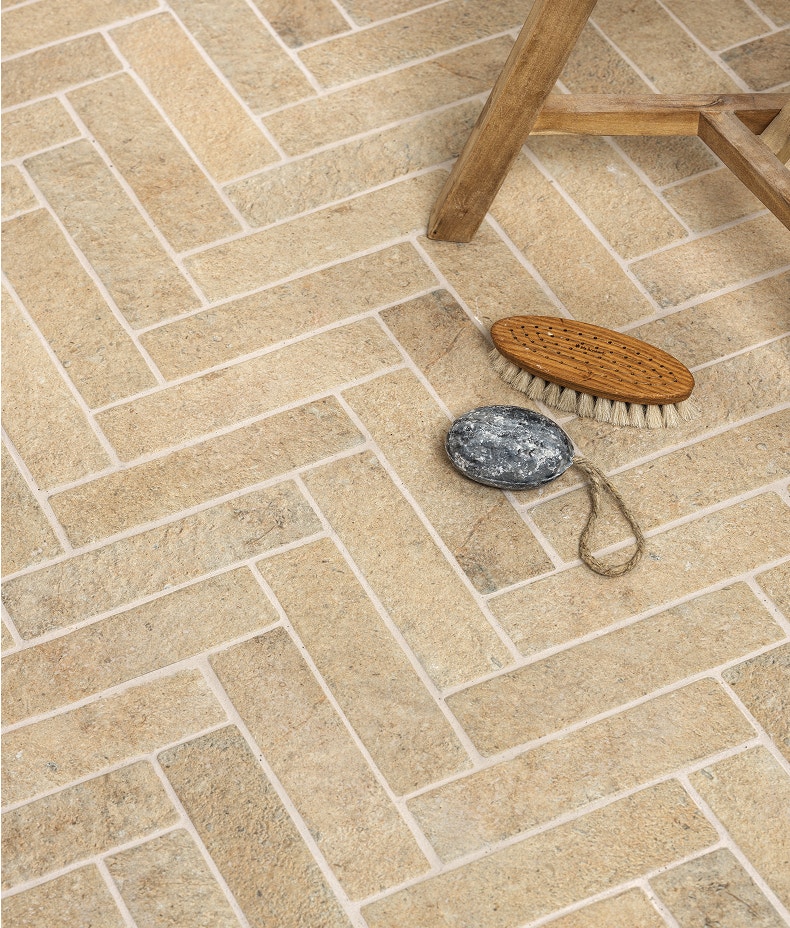A porcelain replica of our most popular limestone, Buscot Parquet Porcelain captures the tactile, three-dimensional feel of natural stone. With its warm honey-cream tone and authentic texture, this versatile tile brings timeless charm to any space—along with the durability and easy care of porcelain.