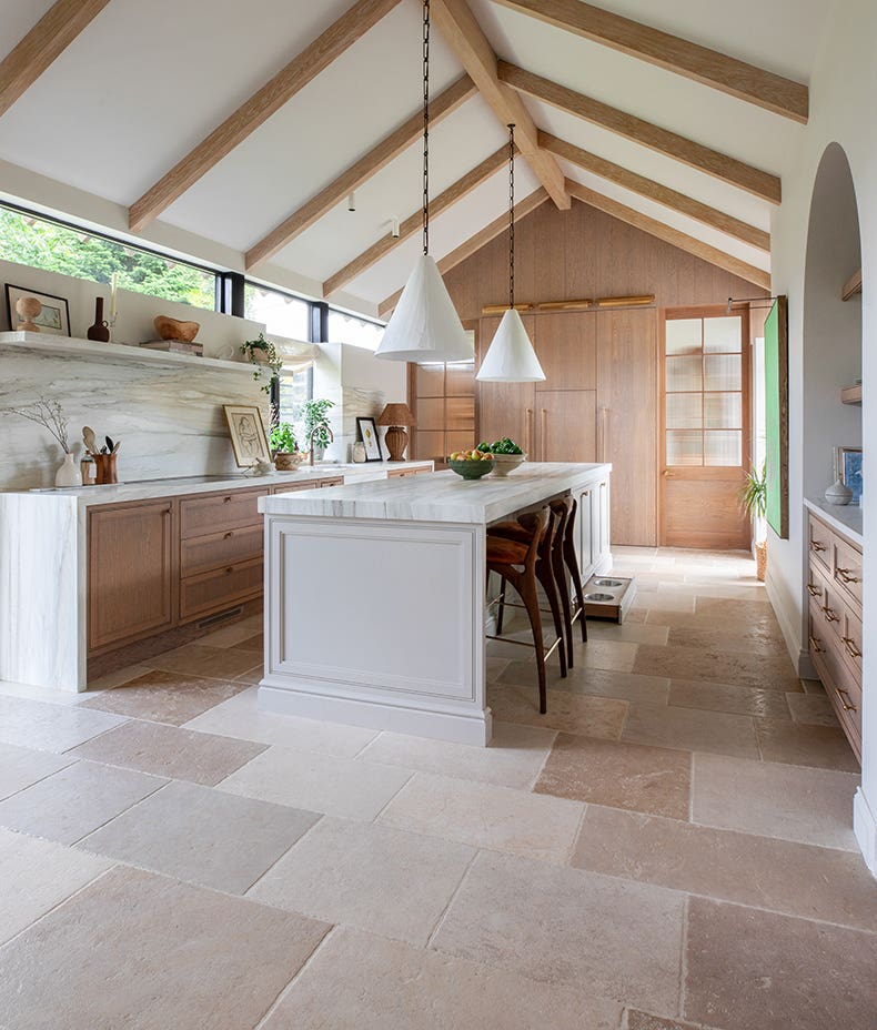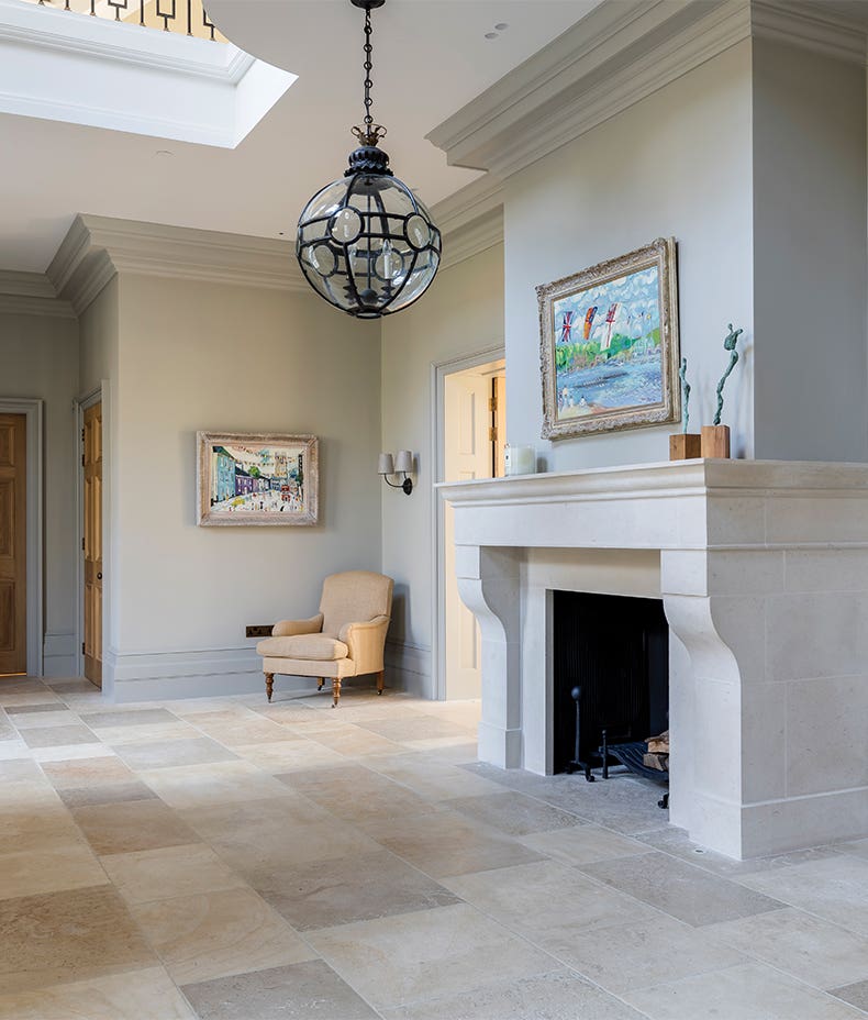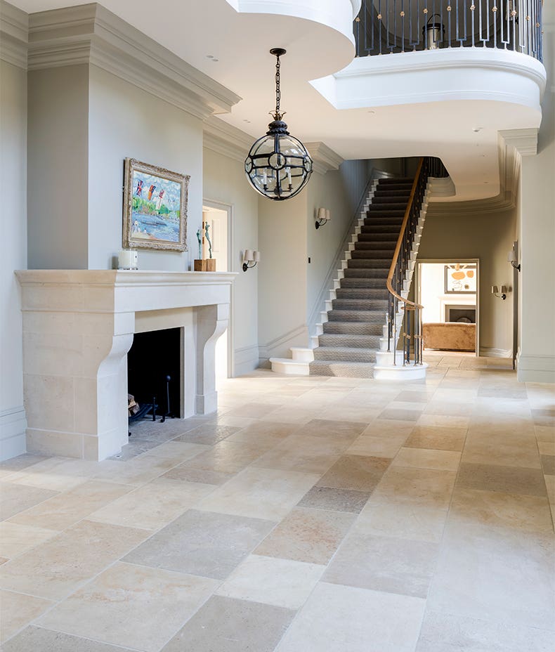 Sourced in France, this beautiful limestone has a timeless antique-effect finish. With a warm blend of beige and light grey tones, this material works beautifully across larger areas such as hallways and reception rooms.