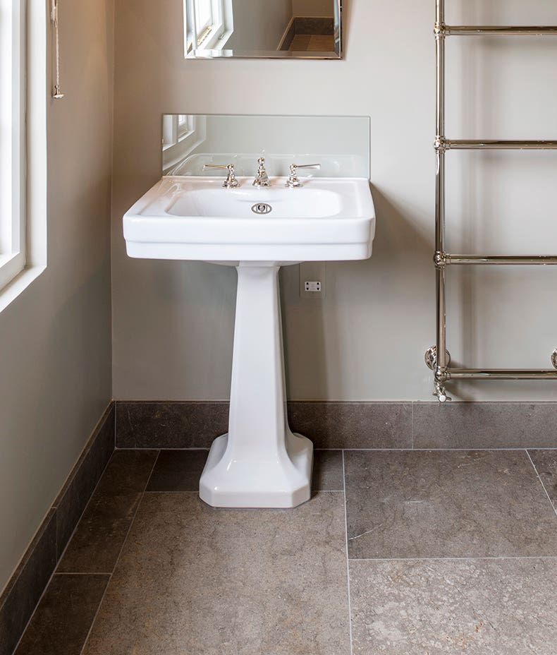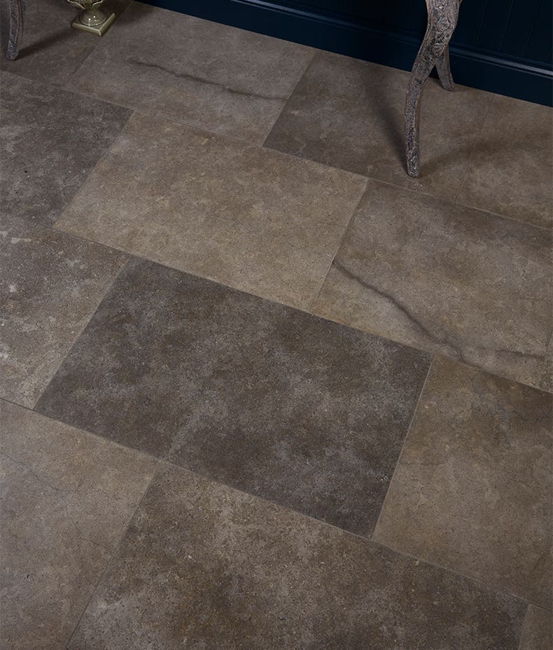 With deep, moody tones of grey and charcoal with lots of natural fossils, this limestone is reminiscent of the very hard limestones found on the Isle of Purbeck in Dorset.