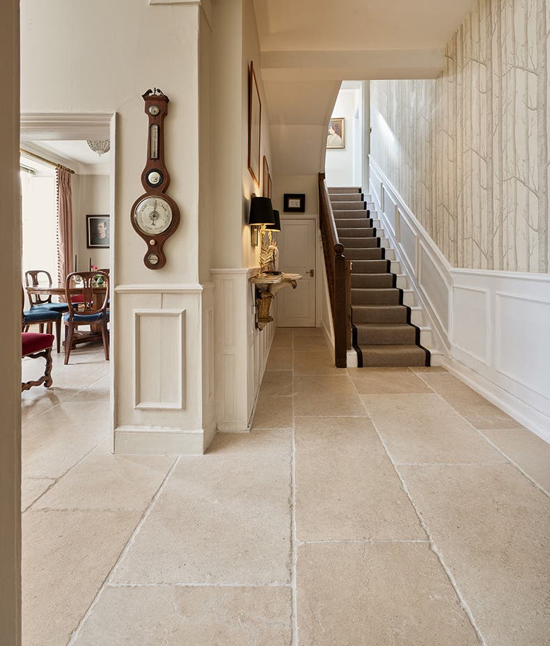Reminiscent of the beautiful limestone flooring found at Lacock Abbey in Wiltshire. Our Heritage finish accurately replicates the marks found on ancient stone floors caused by centuries of wear underfoot – the closest thing to a reclaimed English limestone floor at an affordable price.