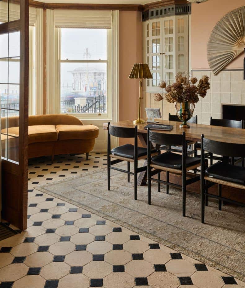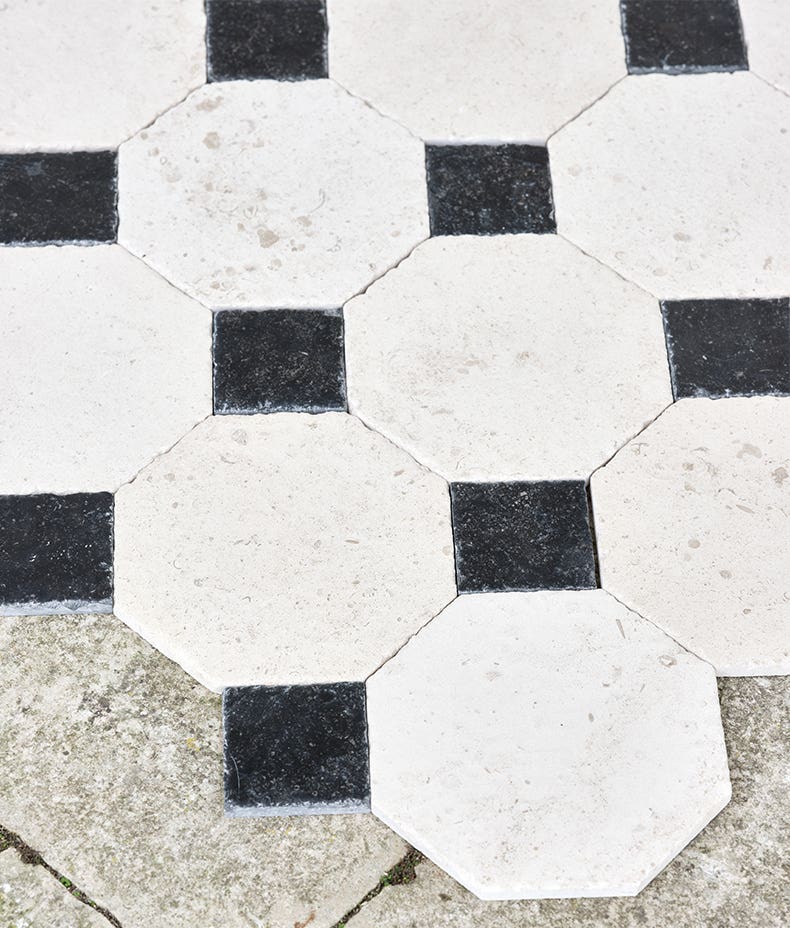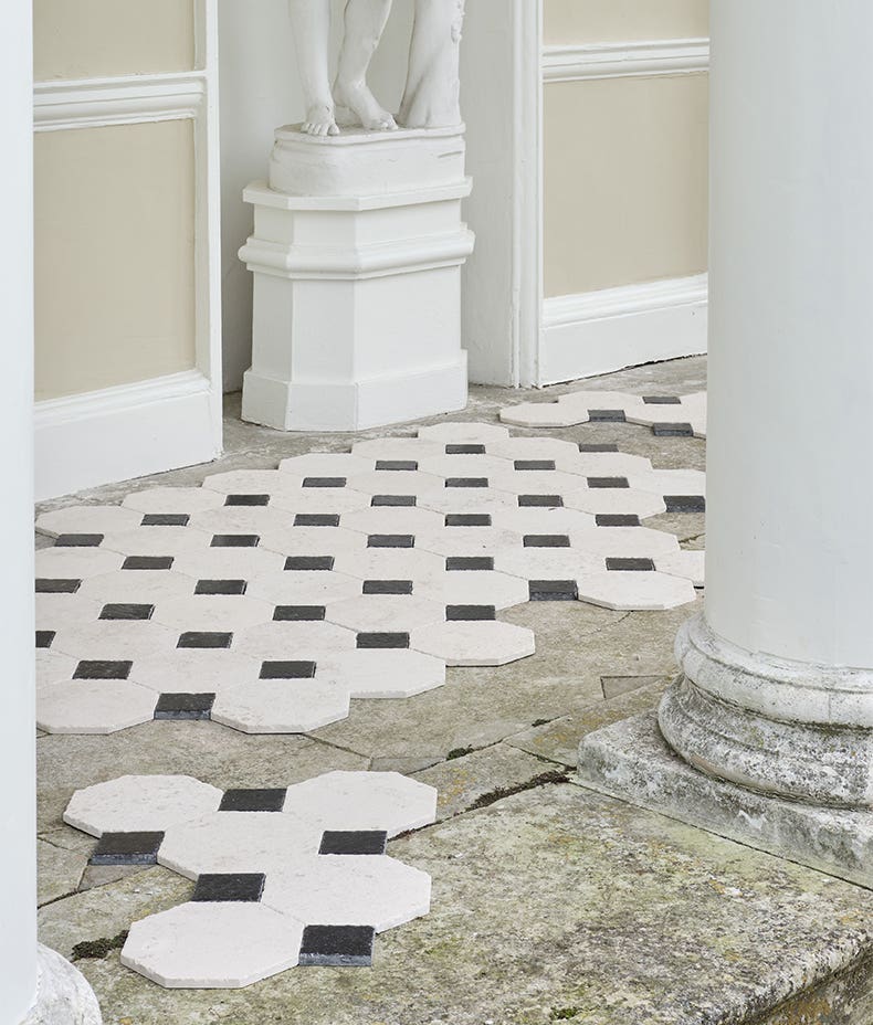 A classic statement of English and French grand houses, white limestone floors, especially when laid with cabochons, are timelessly elegant.