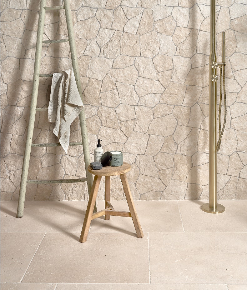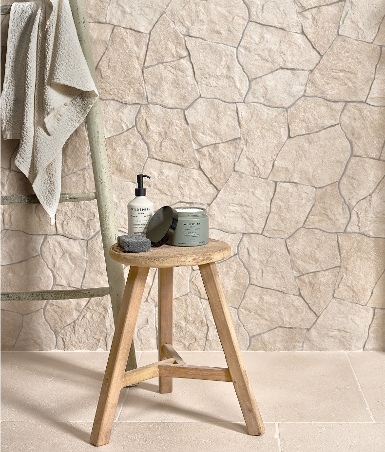Beautifully replicating the look of randomly laid stone walling, Sierra offers a textured, limestone-inspired surface in an easy-to-install, low-maintenance porcelain. The light, creamy tone makes it a versatile choice for both traditional and modern spaces.